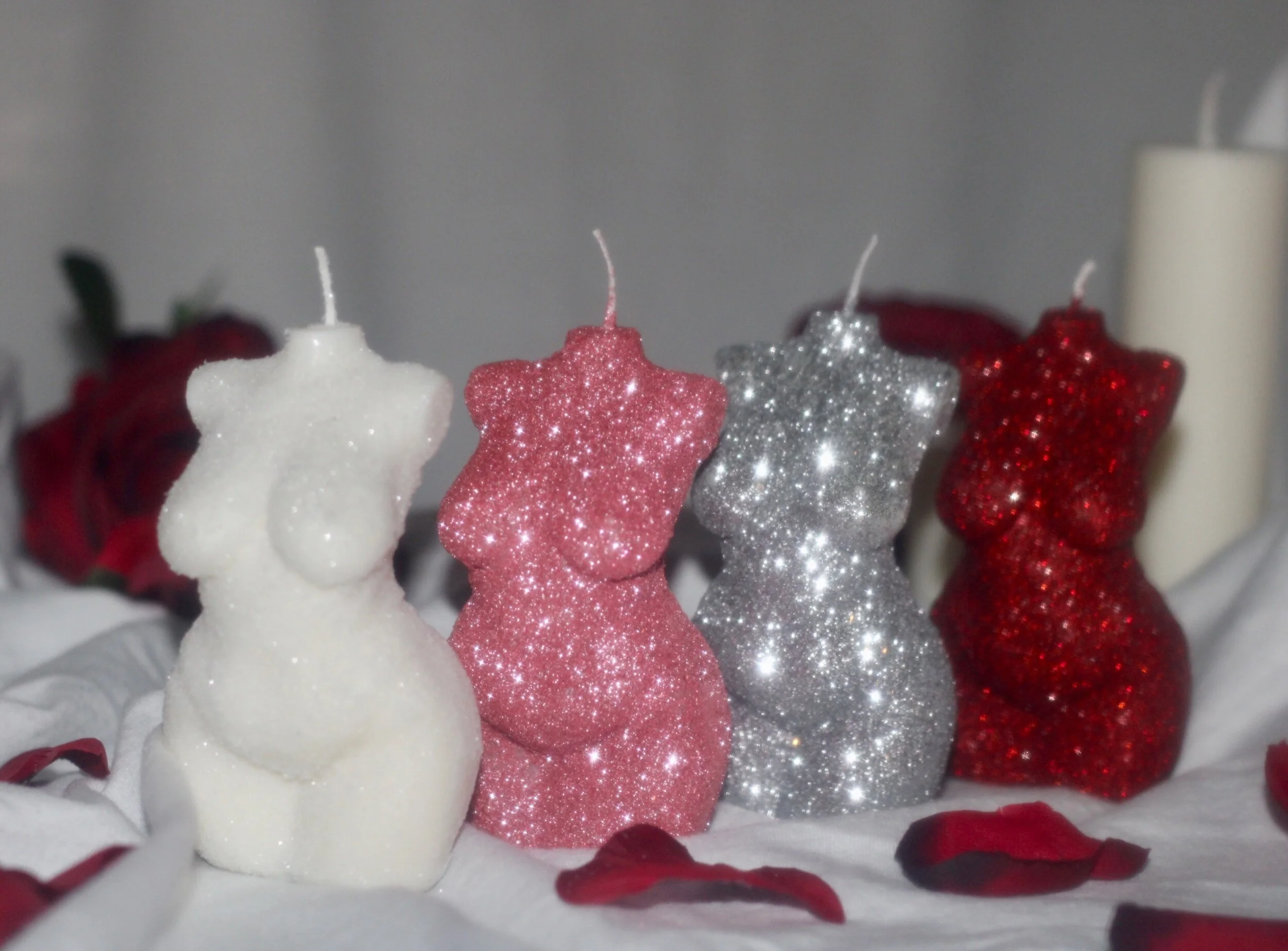 Romance Sculpt, a collection of sealed glitter torso candles. These captivating sculptures not only dazzle with their glittering exterior but also enchant with a delicate fragrance, creating a truly sensual ambiance that sparks romance and captivates the senses